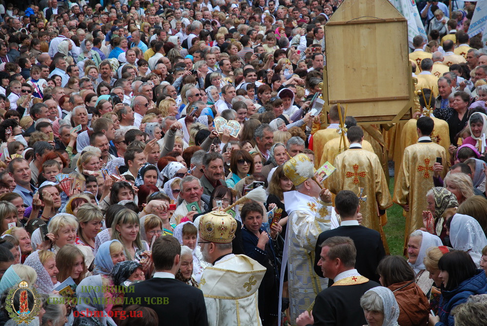 Відтак, відбувся процесійний похід з чудотворною іконою Св. Миколая, від відпустової каплиці до монастиря, під час якого владики окроплювали прочан свяченою водою та уділяли їм своє архієрейське благословення.
