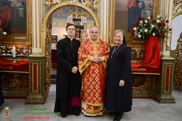 Разом з Архієреями Літургію співслужили Отці Василіяни: Протоігумен Провінції Св. Миколая в Україні о. Андрій Белеканич разом з Провінційним Вікарієм о. Павлом Кречуном та Провінційним Радником о. Михайлом Станком, як також Отці Провінції Найсвятішого Спасителя в Україні: о. Пантелеймон Саламаха та о. Роберт Лисейко, який був провідником духовної віднови для Сестер Служебниць в рамках відзначення їхнього ювілею. Літургію співслужив теж о. Платон Салак ЧСВВ – Адміністратор парафії, яка діє при Василіянському Монастирі Св. Йосафата в Кулі (Сербія).