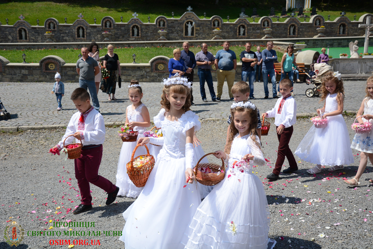 Після Літургії відбулося виставлення Святих Тайн та процесійний хід довкола храму, який очолили ієромонахи Малоберезнянського монастиря: о. Лука Буняк ЧСВВ, о. Йосафат Сичкун ЧСВВ та о. Еміліян Гавей ЧСВВ. Першопричасники супроводжували в процесії Євханистійного Ісуса розсипаючи перед Ним пелюстки троянд. Навколо храму біля трьох престолів процесія зупинялася, виголошуючи молитовні благання.