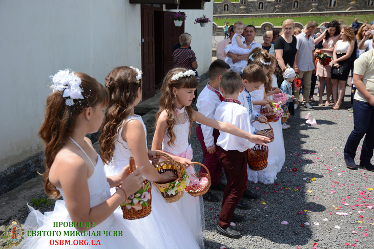 Перед початком Літургії, дітей, у супроводі батьків, привів до храму їхній катехит о. Йосафат Сичкун ЧСВВ, де їх зустрів парох о. Лука Буняк ЧСВВ. У притворі храму діти відновили свої хресні обітниці Христові та урочисто увійшли до церкви.