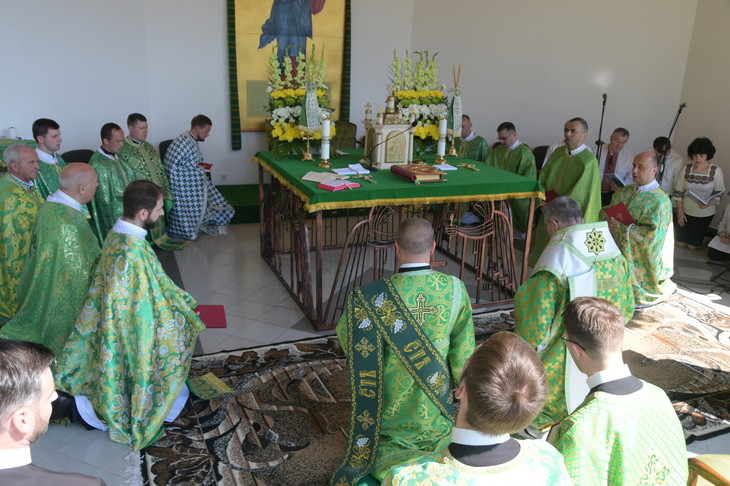 Архієрейську Божественну Літургію очолив та проповідь виголосив преосвященний Владика Мілан Шашік, СМ, Ординарій МГКЄ. Йому співслужили о. Андрій Белеканич, ЧСВВ, Протоігумен Провінції Святого Миколая оо. Василіян в Україні, о. Миколай Козіцький, ЧСВВ, Протоігумен Провінції Покрова Пресвятої Богородиці оо. Василіян у Варшаві (Польща), а також отці василіяни з Провінції Святого Миколая та Провінції Найсвятішого Спасителя в Україні. Окрім василіянського монашества у Службі Божій взяло участь єпархіальне духовенство та представники монаших спільнот. Святу Літургію своїм співом супроводжував хор катедрального собору м. Івано-Франківська. Під час Св. Літургії Владика Мілан уділив священичі свячення диякону о. Павлу Ходаничу з с. Вільшанки, Перечинського району.