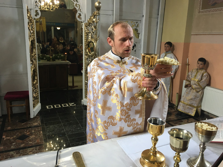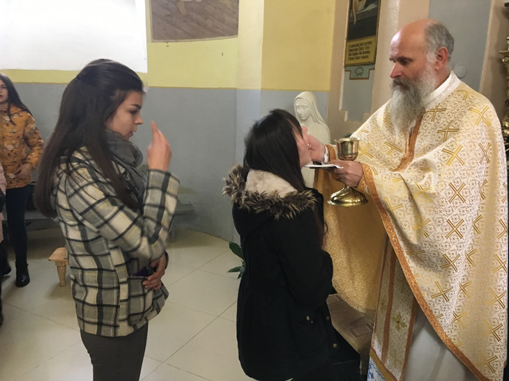 Божественна Літургія завeршилася окроплeнням свячeною водою, мируванням, а також многоліттям для всіх присутніх.