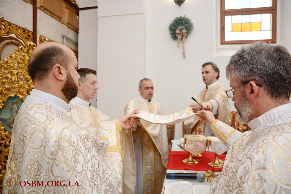 Очолив Літургію Протоігумен Провінції о. Франціск Онисько ЧСВВ, у співслужінні з новообраними: Провінційним вікарієм о. Даниїлом Дербалем ЧСВВ і о. Полікарпом Погоріляком ЧСВВ, як також з вислуженою Провінційною управою: о. Андрієм Белеканичем ЧСВВ, о. Павлом Кречуном ЧСВВ та о. Михайлом Станком ЧСВВ. Разом з ними співслужив також адміністратор монастирської парафії о. Лука Буняк ЧСВВ.