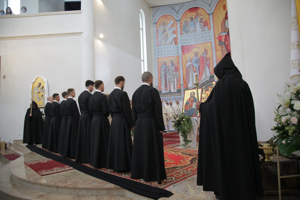 Обряд складання довічних монаших обітів згідно із звичаєм відбувається під час Божественної літургії після Малого входу. Цього року обіти склали брати Василіяни Филип Блажкевич, Антоній Германович, Максиміліан Григор’їв, Вартимей Дутчин, Роман Кундзір, Мар’ян Поспішель, Тадей Херович, Терентій Хомишин. Після вступних обрядів кожний зокрема увійшов у святилище, поклав руку на святе Євангеліє і виголосив присягу довічних обітів. Опісля відбулося облачення у чернечий одяг та інші атрибути, притаманні для вічних обітів – чернечий параман, нагрудний хрест, мантію з каптуром та запалену свічку. Складенням цих обітів ченці стають повноправними членами Василіянського чину та отримують право голосу.