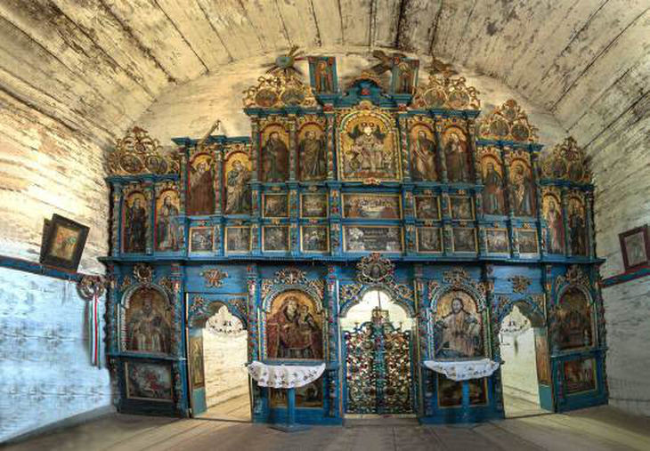 Серед збережених ікон XІV початку XV столітть, які знаходились в намісному ряді, — здебільшого храмові ікони (із зображенням святого патрона церкви, чи свята, якому посвячений храм), ікони Богородиці в іконографічному варіанті «Богородиця Одигітрія з похвалою», святого Миколая з житієм, та рідше ікона Христа Вседержителя в повний ріст. Над входом до святилища, який розташовувався у центрі вівтарної перегородки, розміщувалась ікона Нерукотворного Образу Ісуса Христа. Сам прохід завішувався завісою —катапетасмою (Царські врата з'явилися дещо пізніше, найдавніші, із зображеннями чотирьох євангелистів та Благовіщення Богородиці, датовані кінцем XV столітя і походять з с. Балутянка на Лемківщині).