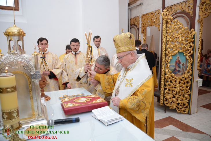 Архієрейську Літургію з Преосвященним Владикою співслужили Отці Василіяни (17 ієромонахів): Протоігумен Провінції Св. Миколая о. Андрій Белеканич, Протоігумен Словацької Провінції о. Методій Біланчік та о. Теодор Кость з Краснобідського монастиря (Словаччина), Вікарій Провінції Св. Миколая і Настоятель Імстичівського монастиря о. Павло Кречун, Ігумен Дрогобицького монастиря о. Макарій Ленів ЧСВВ та о. Павло Ясиновський з Дрогобицького монастиря, Ректор Василіянського Інституту Філософсько-Богословських Студій ім. Йосифа В. Рурського о. Пантелеймон Трофімов та Префект о. Никанор Ситар, о. Любомир Бобиляк з Погінського монастиря, Настоятель Боронявського монастиря о. Тарас Іванина та о. Даниїл Дербаль з Боронявського монастиря, Радник Провінції Св. Миколая та Намісник Малоберезнянського монастиря о. Михаїл Станко, Ігумен Київського монастиря о. Роман Шупʼяний, Ігумен Жовківського монастиря о. Григорій Анастасин та о. Інокентій Меша з Жовківського монастиря, Ігумен Крехівського монастиря о. Іван Майкович та о. Кипріян Зейкан з Мукачівського монастиря.