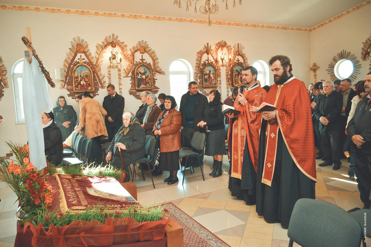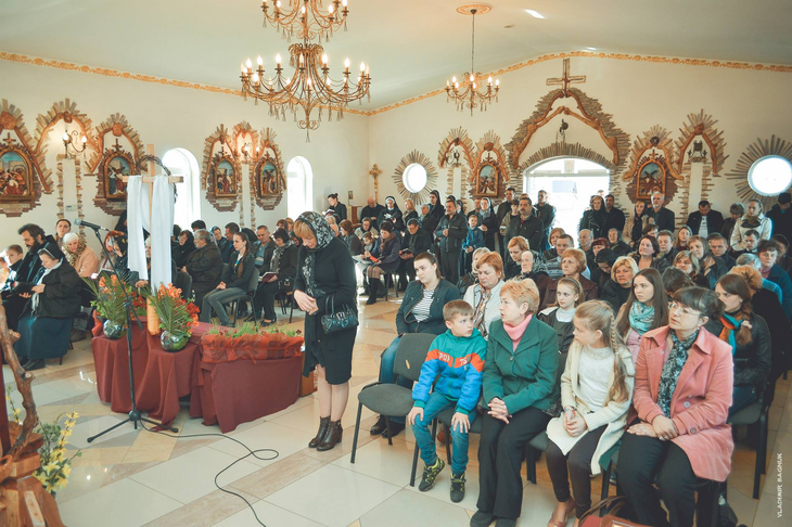 Плащаниця, виставлена в Мукачівському монастирі Отців Василіян, у Страсну П’ятницю, 10 квітня 2015 року Божого.