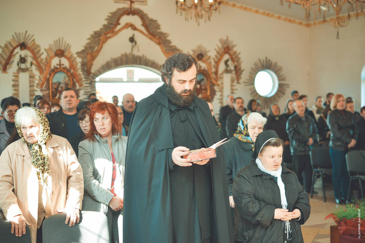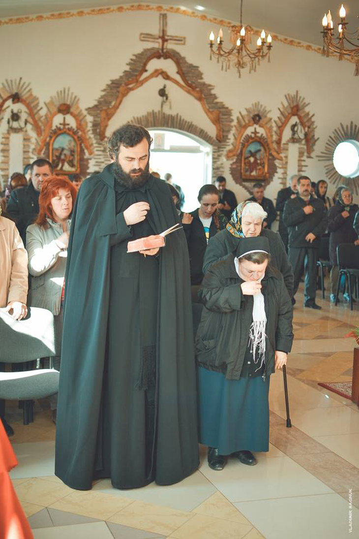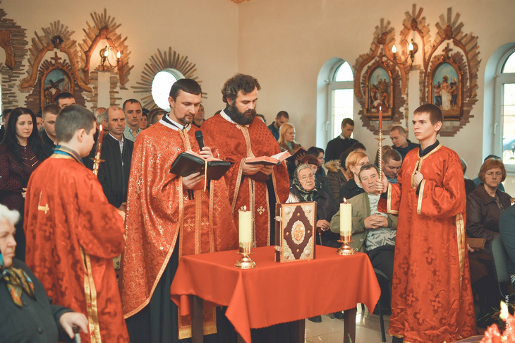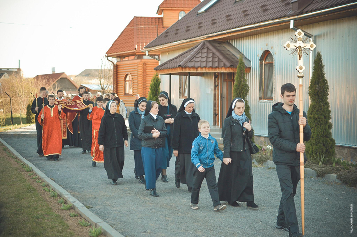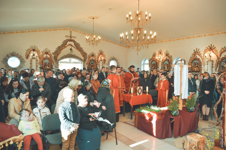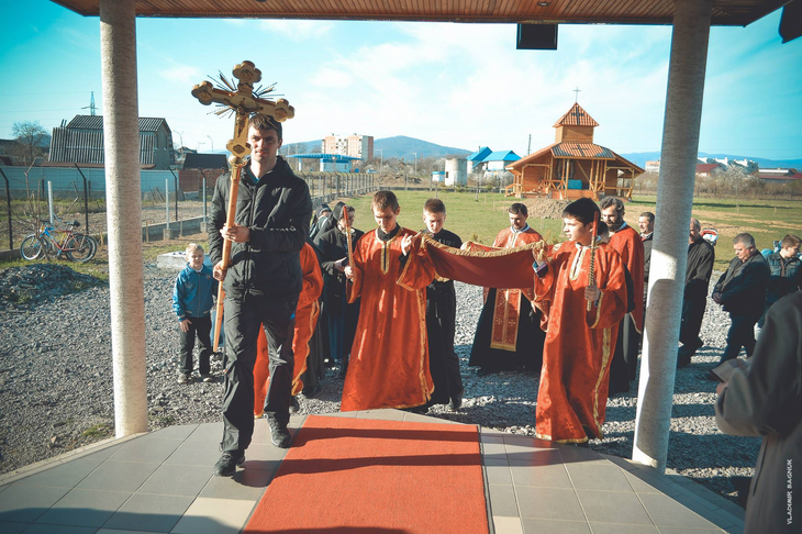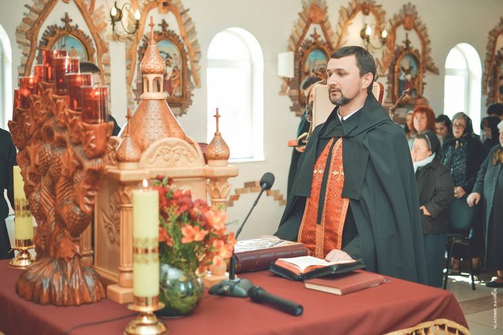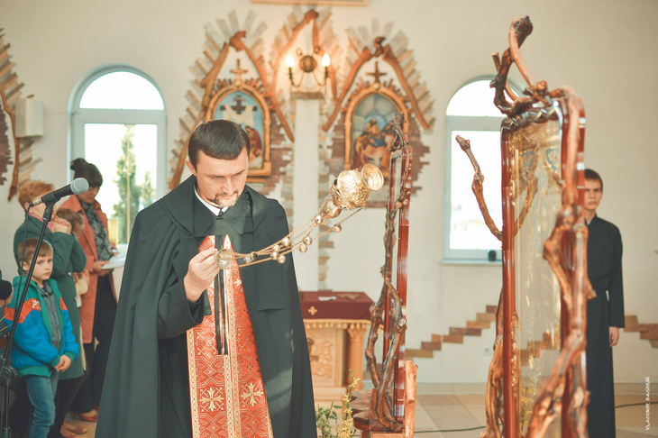 Плащаниця, виставлена в Мукачівському монастирі Отців Василіян, у Страсну П’ятницю, 10 квітня 2015 року Божого.